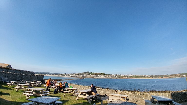 Our new client, the Island Cafe at the base of the mount, was just shutting her doors after a busy day so whilst we missed the delicious sounding menu we very much enjoyed the view from the garden back towards the mainland and Marazion town. It was great to see the logo and branding we designed for the Island Cafe being used so well. The signs looked fantastic for their setting, blending in perfectly with the ethos of both the cafe and the Mount itself.
