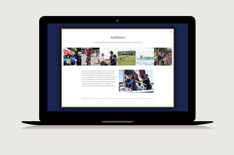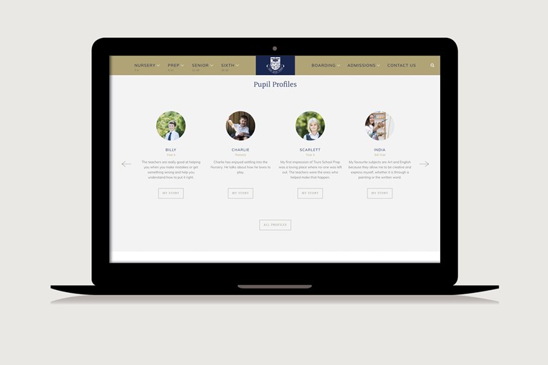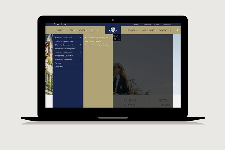 Working closely with both the marketing team at Truro School and our senior programmer we agreed the main user journeys and key communication role of the website in the coming years, developing a set of styles and impactful page designs along with wireframes of how the navigation would work. Our approach was 'mobile first' and then expanded to work seamlessly across tablet and desktop.