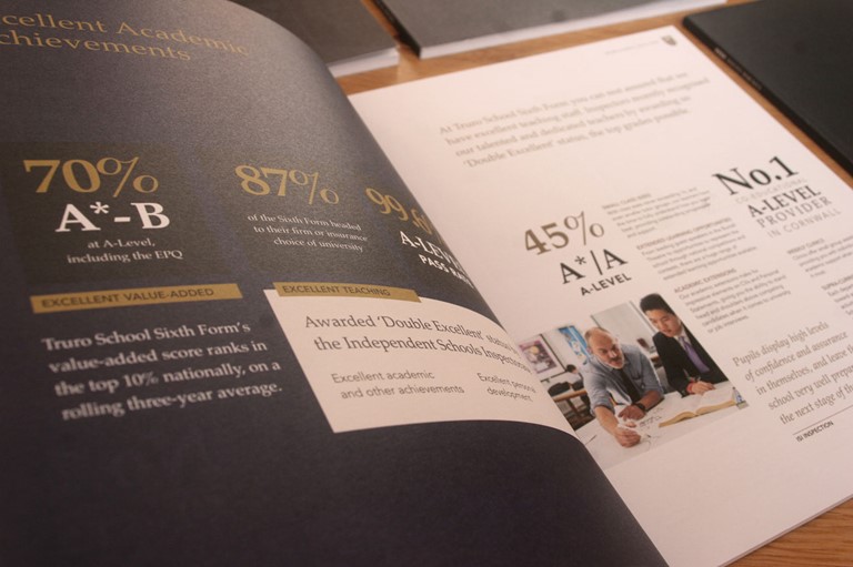 A beautiful 64-page perfect-bound brochure, the layouts and styling help portray the School as one of the best A-level providers in Cornwall.