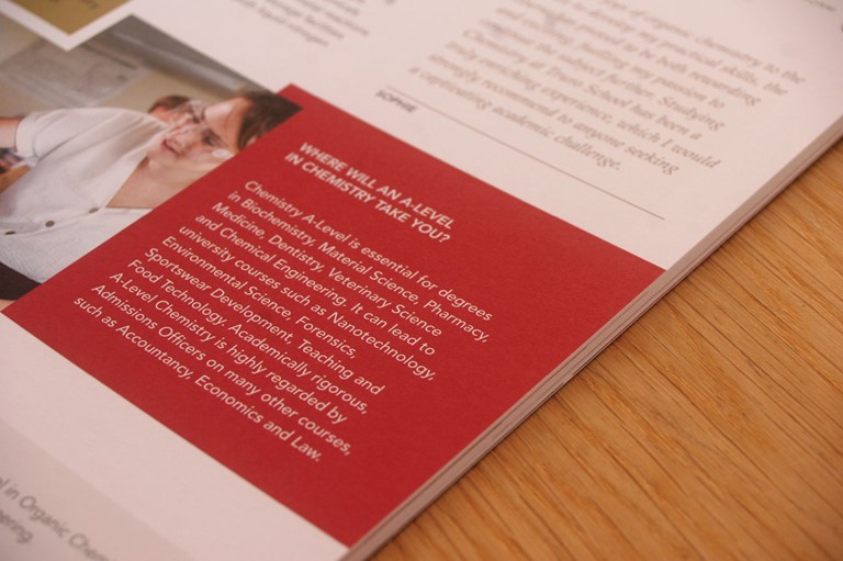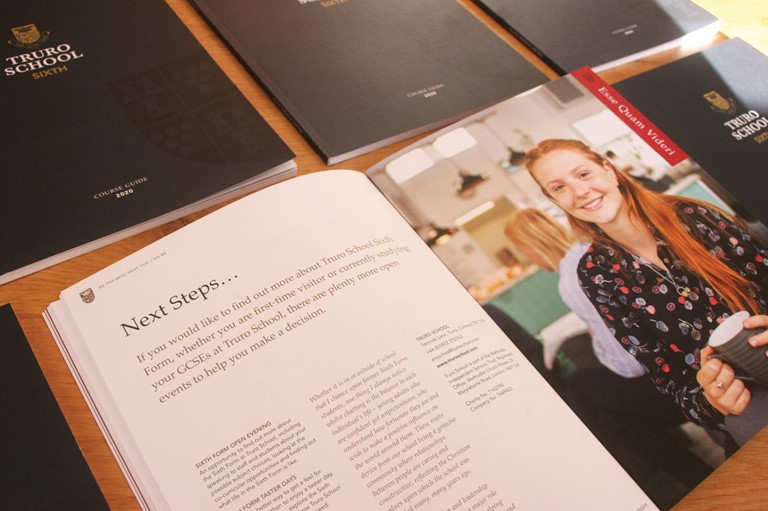 One of the first new-look items to be rolled out was the Truro School Sixth Form Course Guide.